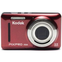 KODAK - FZ53- Appareil photo compact - Rouge - 16 Mégapixels - Zoom Optique X5 - Zoom Digital x6 - Video HD: Résolution 1280x720 - Grand Angle 28mm - 1600 Iso - Stabilisation numérique - Détection des visages - Mode panorama - Compatible SD/SDHC - Batterie Lithuim-ion - Ecran: 6,85cm