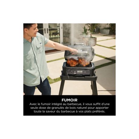 Polyvalent avec 4 modes de cuisson : Grill (Barbecue), Smoker (Fumoir), Air Fry (Friteuse sans huile), Roast (Rôtir)