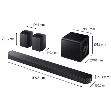 Samsung HW-Q990F/ZF. Canaux de sortie audio: 11.1.4 canaux, Puissance évaluée de RMS: 756 W, Décodeurs audio intégrés: DTS 5.1, DTS Express, ...