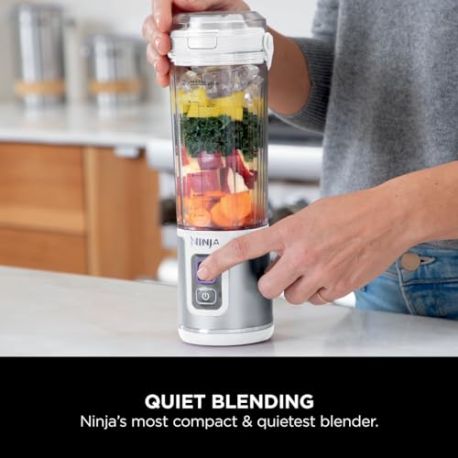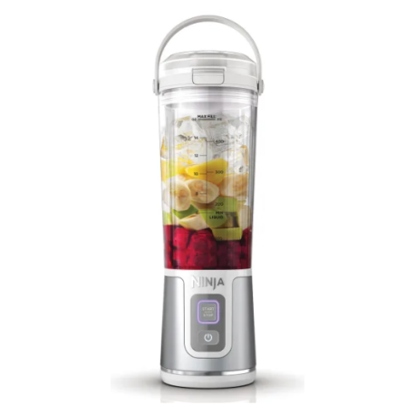 Comprend : base motorisée Ninja Blast avec lame BlastBlade intégrée, gobelet de 530 ml*, couvercle à bec étanche, couvre-lame, couvercle pour le gobelet, câble de charge USB-C et livret de recettes.