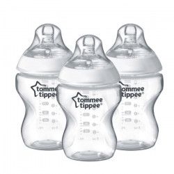 Les biberons Tommee Tippee 0m+ recréent la sensation douce de l`allaitement grâce a leur tétine souple en silicone conçue pour imiter la flexion, le mouvement et la souplesse naturels du sein maternel. Ce biberon a également une forme ergonomique, facile a tenir pour les petites mains de bébé. Tétines débit lent. 0% Bisphénol - Coloris : Transparent - Des la naissance - Lot de 3 biberons 260ml.