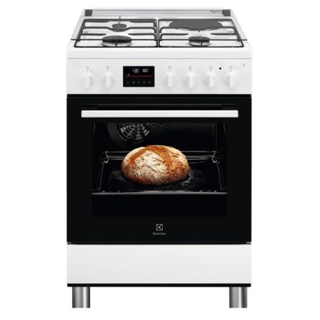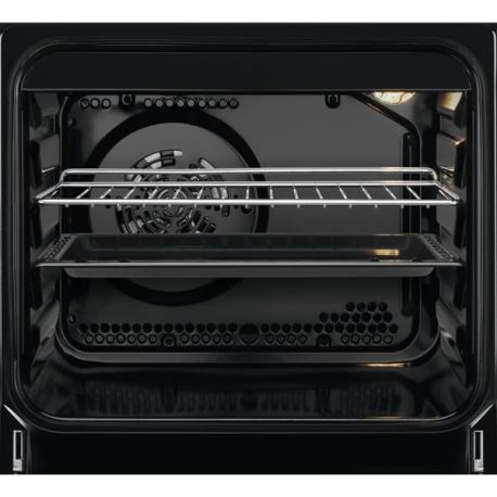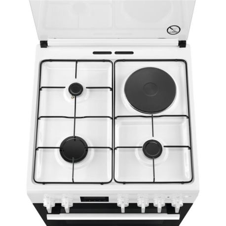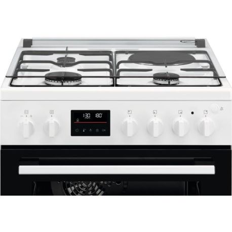 Cuisinière mixte - Four électrique - Programmateur électronique - 9 modes de cuisson dont Pizza - Préconisation de température - Gril électrique 1650 W - Chaleur Tournante - Contre-porte plein verre - Porte 3 vitres avec verres démontables - Allumage de la table électronique - 1 plaque et 3 brûleurs dont 1 rapide 3 kW - Grilles émaillées - Sécurité gaz par thermocouple - Compartiment de rangement avec abattant - Couvercle verre.
