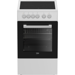Beko FSS57000GW. Type de produit: Cuisinière, Couleur du produit: Noir, Blanc, Type de commande: Rotatif. Type de plaque: Céramique, Nombre de brûleurs: 4 zone(s), Nombre de zone de cuisine électrique: 4 zone(s). Taille du four: Moyenne, Source d'alimentation du four: Electrique, Capacité nette du four: 60 L. Consommation d'énergie (conventionnelle): 0,85 kWh, Classe d'efficacité énergétique (ancienne): A. Largeur: 500 mm, Profondeur: 600 mm, Hauteur: 850 mm