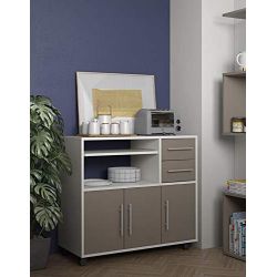La desserte PEPPER, tres fonctionnelle permet d`installer un four micro ondes et offre de multiples rangements additionnels pour la cuisine - 3 portes ouvrantes sur un compartiment avec tablette intégrée - Coloris blanc et taupe - En panneaux de particules - Dimensions : 89 x 40 x 81 cm et 32 kg - Garantie : 1 an fournisseur