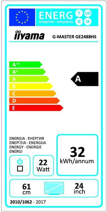 iiyama G-MASTER GE2488HS-B2. Taille de l'écran: 61 cm (24"), Résolution de l'écran: 1920 x 1080 pixels, Type HD: Full HD, Technologie d'affichage: LED. Écran: LED. Surface d'affichage: Mat, Temps de réponse: 1 ms, Format d'image: 16:9, Angle de vision horizontal: 170°, Angle de vision vertical: 160°. Haut-parleurs intégrés. Montage VESA. Couleur du produit: Noir