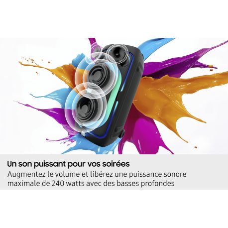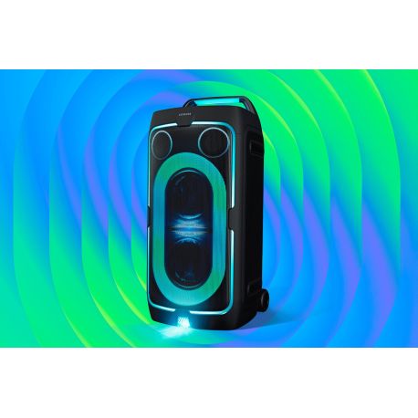 Soyez au coeur de la fête avec l'enceinte ultra-puissante ST50F. Emmenez-la partout avec vous, lors de vos après midi entre amis, vos soirées karaoké et vos sessions Jam. Profitez de jeux de lumières, de différents modes sonores et de sa batterie rechargeable pour profiter de votre musique sans interruption.