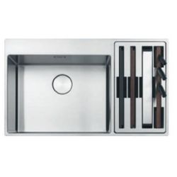 BWX 220-54-27 BOX CENTER Evier INOX LISSE, 1 1/2 cuve, 860X510X200mm, vidage auto, avec plage de Robinetterie, petite cuve à droite