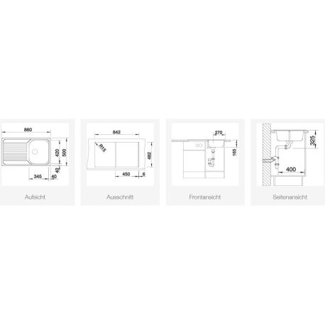 Evier Métra XL 6S Silgranit® - Une grande cuve très profonde (49x43x19) + égouttoir cannelé - Pour sous-meuble de 60 cm - Livré avec bonde à ...
