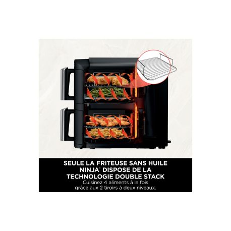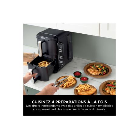 6 modes : Air Fry (Frire sans huile), Max Crisp (Croustillant maxi), Roast (Rôtir), Bake (Cuire au four), Dehydrate (Déshydrater) et Reheat (Réchauffer)