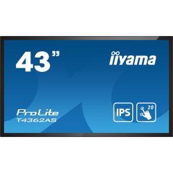 iiyama T4362AS-B1. Conception du produit: Écran plat interactif. Taille de l'écran: 108 cm (42.5"), Technologie d'affichage: IPS, Résolution de l'écran: 3840 x 2160 pixels, Luminosité de l'écran: 500 cd/m², Type HD: 4K Ultra HD, Écran tactile. horaires de service (heures/jours): 24/7. Système d'exploitation installé: Android 8.0. Couleur du produit: Noir