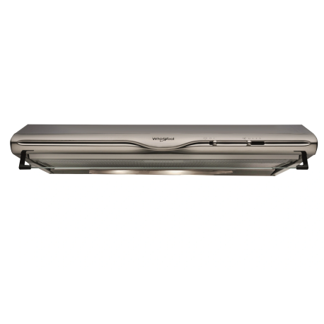Whirlpool WCN 65 FLX H2G. Puissance d'extraction maximum: 270 m³/h, Type d'extraction: Conduit / Recirculation, Classe d'efficacité dynamique du fluide: D. Type: Montée au mur, Couleur du produit: Acier inoxydable, Type de commande: Glissière. Type de filtre à graisse: Aluminium/Charbon. Puissance de l'ampoule: 6 W, Nombre d'ampoules: 2 ampoule(s), Type d'ampoule: LED. Classe d'efficacité énergétique: D, Consommation annuelle d'énergie: 67 kWh, Plage d’efficacité énergétique: A+++ à D