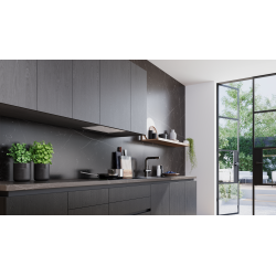 Intégrée, Built-in/Telescopic, LED, metal grey + squared stainless steel frontal with details in plastic grey