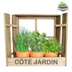 MGM Fenetre Jardiniere avec 3 Pots en bambou biodégradables, substrat et graines de 3 plantes aromatiques (ciboulette, basilic, coriandre) - Garçon et Fille - A partir de 3 ans - Livré a l`unité