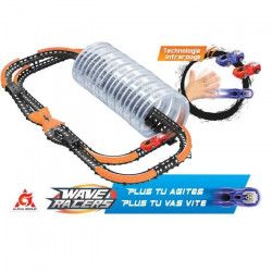 Défie tes amis sur le nouveau circuit Wave Racers ! Agite la main rapidement au dessus du capteur de la voiture pour la faire démarrer. Le circuit Spiral Frenzy est composé d`un enchainement de 9 looping impressionnants, prépare toi aux cascades ! C`est un circuit extensible : assemble les 99 pieces du circuit pour composer le modele Spiral Frenzy, ou ajoute des pieces d`un autre circuit Wave Racers et ajouter de la