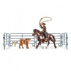 Schleich Figurine 41418 - Animal de la ferme - Capture au lasso avec un cowboy