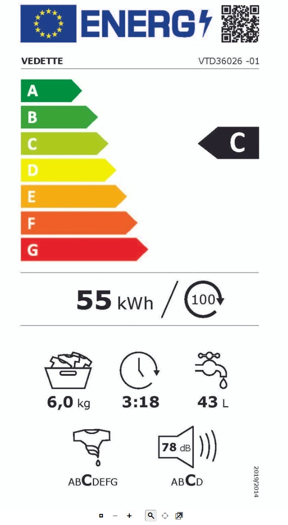 Le lave-linge Top Vedette VTD36026 blanc, d'une capacité de lavage de 6 Kg, est doté de 15 programmes dont un programme Rapide 45 minutes.