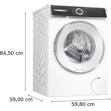 Bosch Serie 6 WGH254A0FR. Type de chargement: Charge avant. Capacité nominale: 10 kg, Classe d'efficacité d'essorage: B, Niveau sonore (essorage): 73 dB, Vitesse d'essorage maximale: 1400 tr/min. Couleur du produit: Blanc. Largeur: 598 mm, Profondeur: 590 mm, Hauteur: 845 mm. Classe d'efficacité énergétique: A
