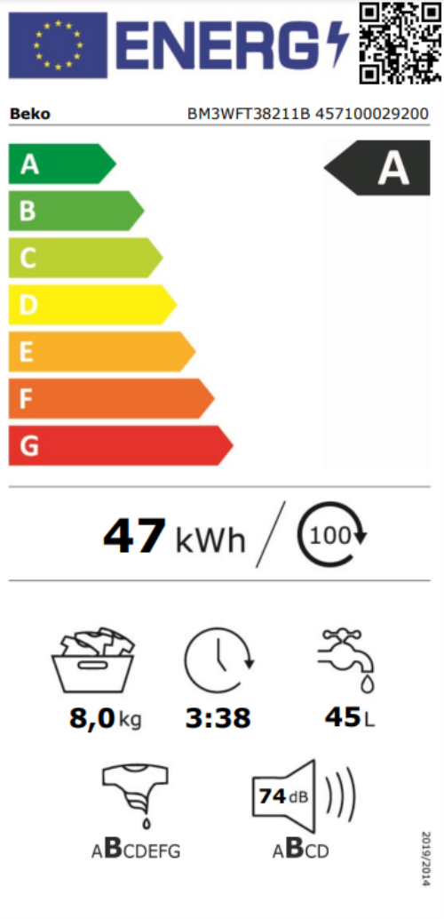 Gorenje 742847. Type de chargement: Charge avant. Capacité nominale: 10 kg, Classe d'efficacité d'essorage: A, Niveau sonore (essorage): 72 dB, Vitesse d'essorage maximale: 1400 tr/min. Couleur du produit: Blanc. Largeur: 600 mm, Profondeur: 610 mm, Hauteur: 850 mm. Classe d'efficacité énergétique: A