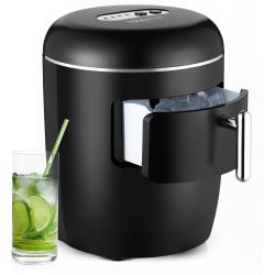 Machine à glaçons - Élégance - Compacte et silencieuse pour réaliser rapidement 2 tailles de glaçons - Sa capacité est de 10/12 kg de glaçons en 24 heures soit environ 10 glaçons toutes les 9/10 minutes en moyenne - Capacité du réservoir à eau 2,3 litres pour 1.8 L soit 800 g de glaçons - Témoins lumineux pour indiquer que le bac à glaçons est plein ou que le réservoir d`eau est vide - Bac à glaçon tiroir avec poignée finition chromée pour un look rétro - Silencieuse : 60 dBA - Coloris Noir Satiné - Dimensions 30 x 35 x 38 cm - Poids 10 kg - Puissance 150 W - Garantie 2 ans.