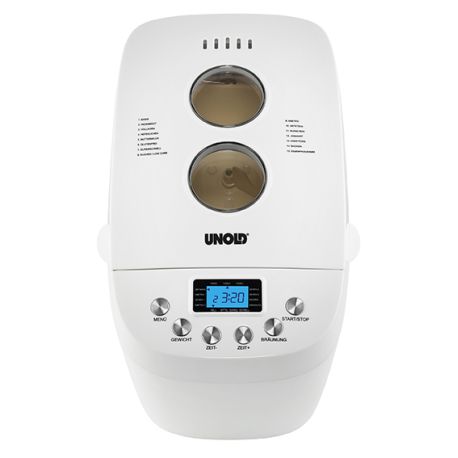 Unold 68520. Matériau du boîtier/corps: Plastique, Couleur du produit: Blanc, Le poids du pain maximum: 1,5 kg. Puissance: 850 W, Tension d'entrée ...