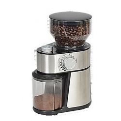 Puissance 150W - Finesse de la mouture réglable - Pour café filtre ou poudre a expresso - Nombre de tasse réglable par minuterie programmable - Broyeur en acier inoxydable - Réservoir collecteur du café moulu amovible, capacité 100g - Environ 150g de grains de café - Ventouses anti-glisse