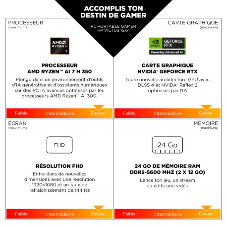 HP Victus Gaming 15-fb2027nf. Type de produit: Ordinateur portable, Format: Clapet. Famille de processeur: AMD Ryzen™ 5, Modèle de processeur: ...