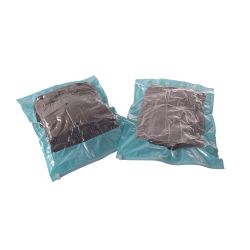 Lot de 2 sacs de rangement sous-vide en nylon et polyéthylene. Coloris : vert et transparent. Fermeture zippée, avec curseur fourni. Chaque sac peut contenir l'équivalent de 2 blousons. Permettant de compresser le linge en roulant les housses sur elles-memes (sans aspirateur). Dimensions : 55x70 cm.