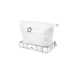 190 L. Dimensions produit: 45 x 105 x 15.50 cm. Le principe de la gamme compactable est de réduire le volume des vetements et linge encombrant en les rangeant « sous vide ». Il suffit de mettre dans la housse tout votre rangement encombrant, d'aspirer l'air avec un simple coup d'aspirateur, de zipper la housse et de mettre les sangles de maintien. Aspili : sa forme tres pratique permet de le glisser aisément sous un lit. Rangement de 3 couettes maximum (220 X 240).