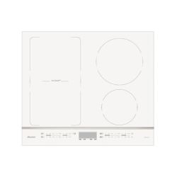 Table induction - Gamme Intuitive - 3 foyers dont une double zone Ø 18-28 cm 5,2 kW - 15 niveaux de puissance - 3 Boosters - 3 minuteurs - Fonction Indicateur temps écoulé - 5 niveaux de sécurité : Anti-surchauffe, Verrouillage clavier, Arrêt automatique, Anti-débordement et Détection de récipients - Commandes sensitives individuelles avec accès direct à chaque position de cuisson par slider - Finition blanche.