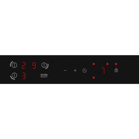 5 foyers induction dont 2 zones flexibles Commande par slider Fonction plancha Fonction maintien au chaud Minuterie 99 min Booster sur chaque ...