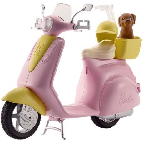 BARBIE - Scooter et petit chien - Un scooter rose idéal pour la poupée Barbie, un casque et un petit panier pour emporter le petit chien en ballade. Poupée vendue séparément - Fille - A partir de 3 ans - Livré a l`unité