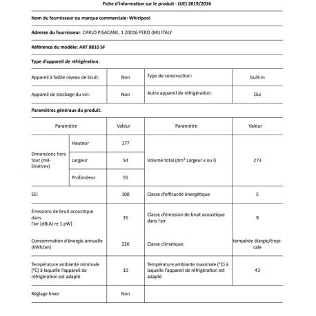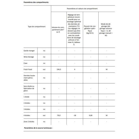 Volume net total : 273 L (Réfrigérateur : 194 L / Congélateur : 79 L)