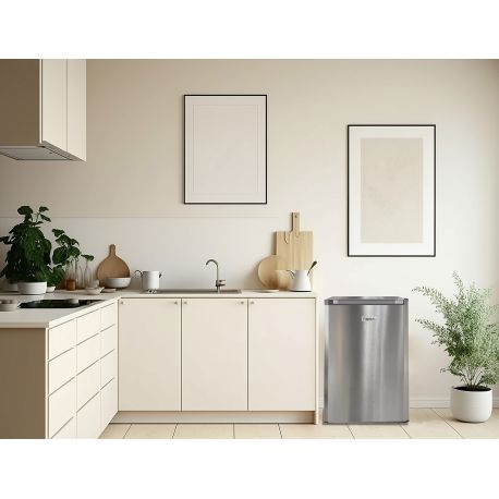 Le réfrigérateur table top RTT127XE, d’une capacité de 120 L, allie style et fonctionnalité avec son design silver et sa porte effet inox. Idéal pour une cuisine moderne, il est équipé de 2 clayettes en verre, 1 bac à légumes, 3 étagères de porte et 2 pieds réglables pour une bonne stabilité. Sa porte pleine avec poignée intégrée facilite l’accès, tandis que le thermostat mécanique permet un réglage précis de la température, maintenue de façon stable grâce au froid statique.