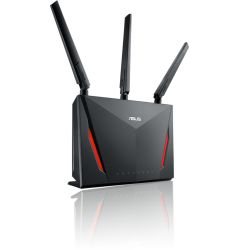ASUS RT-AC86U. Bande Wi-Fi: Bi-bande (2,4 GHz / 5 GHz), Norme Wi-Fi: Wi-Fi 4 (802.11n), Débit de transfert des données WLAN (max): 2917 Mbit/s. Type d'interface LAN Ethernet: Gigabit Ethernet, LAN Ethernet : taux de transfert des données: 10,100,1000 Mbit/s, Standards réseau: IEEE 802.11a, IEEE 802.11ac, IEEE 802.11b, IEEE 802.11g, IEEE 802.11n. Algorithme de sécurité soutenu: 64-bit WEP, 128-bit WEP, IPSec, WPA-Enterprise, WPA-PSK, WPA2-Enterprise, WPA2-PSK, WPS. Type de produit: Routeur, Couleur du produit: Noir, Voyants: LAN, Énergie, WAN, WLAN, WPS. Câbles inclus: LAN (RJ-45)