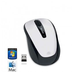 Microsoft Wireless Mobile Mouse 3500. Technologie de détecteur de mouvement: BlueTrack, Interface de l'appareil: RF sans fil, Résolution en mouvement: 1000 DPI, Quantité de boutons programmables: 3, Type Scroll: Roue. Source d'alimentation: Piles. Couleur du produit: Blanc