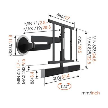 Colonne + support inclinable & orientable avec déport pour écrans de 30'' à 65'' - Ensemble constitué d'un support mural inclinable et ...