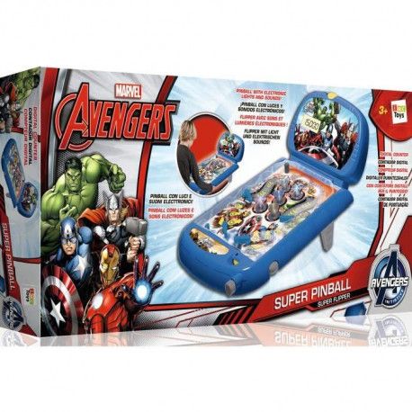 Flipper à l'effigie des héros de Marvel avec de nombreux effets sonores et lumineux comme un vrai. Caractéristiques : - Possibilité de jouer seul ou à plusieurs - Score avec affichage digital - Ajustable en hauteur pour mieux viser - Volume réglable et bouton de réinitialisation Fonctionne avec 4 pi