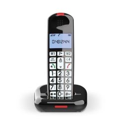 Téléphone sans fil Sénior - Ecran LCD 3 lignes - Larges touches - 2 touches en mémoires (raccourci M1 et M2) - Blocage des appels importuns - Fonction Mains libres - Répertoire 50 entrées - Compatible avec les appareils auditifs - Compatible avec les Box Internet - Autonomie de communication : 10 heures.