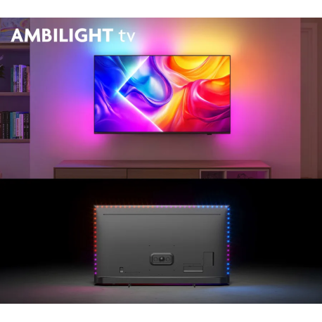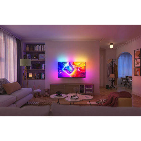 Une expérience complète : image, son et des fonctionnalités intelligentes parfaitement équilibrées Philips Le PUS9000 est conçu pour offrir tout ce que vous attendez d'un téléviseur moderne, et un peu plus. Ce téléviseur QLED 4K combine une image nette, un son puissant et une interface conviviale dans un tout élégant. Grâce à la technologie Ambilight, chaque scène est rehaussée par une lumière colorée adaptée à ce que vous regardez, pour une expérience plus vive et immersive. Que vous regardiez des films, que vous suiviez des séries ou jouiez à des jeux, The One crée la bonne ambiance pour chaque instant. Une image et un son puissants au cinéma dans le salon Avec un processeur d'image P5 avancé et un écran QLED 4K, vous bénéficiez d'une netteté exceptionnelle, de couleurs vives et d'un contraste profond à chaque fois. Dolby Vision produit des images réalistes qui suivent la vision du réalisateur, tandis que Dolby Atmos crée un paysage sonore riche et tridimensionnel. La technologie DTS:X contribue à une expérience audio impressionnante où chaque détail est pris en compte, et avec l'amplificateur audio intégré, le dialogue est clair même dans les scènes à forte intensité sonore. De plus, Philips The One est disponible en plusieurs tailles pour s'adapter aux grands espaces de vie et aux petits espaces. Prêt pour les jeux Philips PUS9000 est optimisé pour les amateurs de jeux avec prise en charge VRR 144 Hz, HDMI 2.1 et AMD FreeSync Premium, garantissant des expériences de jeu réactives et sans décalage. Le mode jeu s'active automatiquement lorsque vous connectez une console de jeu, vous offrant ainsi toujours les meilleures performances possibles. Le système d'exploitation Titan facilite la recherche et l'utilisation de vos applications préférées. Grâce à la prise en charge Matter Smart Home et à la commande vocale, le téléviseur fait naturellement partie de votre maison connectée. Que vous souhaitiez diffuser, jouer ou simplement vous détendre, Philips The One est un choix évident pour les maisons modernes.