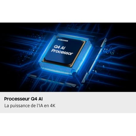 4K AI Upscaling, AI Auto Game Mode, Adaptive Sound, Karaoke Mode, Object Tracking Sound Lite, Q-Symphony, Samsung Knox, Samsung TV Plus, Smart Calibration